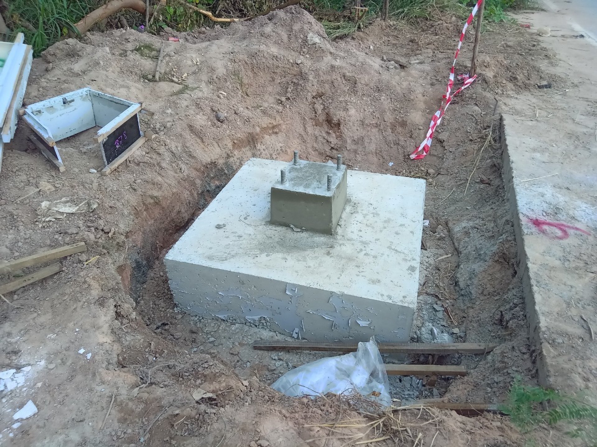 ลักษณะ: มีลักษณะเป็นบล็อกคอนกรีตเสริมเหล็กที่มีขนาดและรูปร่างตามมาตรฐาน มีการฝัง J-bolt (เหล็กยึดเสา) และท่อร้อยสายไฟมาให้พร้อมจากโรงงาน สามารถนำมาติดตั้งได้ทันที